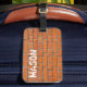 Closeup view of the brick wall. Just brickwork, some rows of orange bricks. They stress the strongness and reliability. Luggage tag. Customisable. You can change or delete the template name Mason. Have fun and happy travel.
