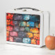 This is a standard metal lunchbox that appears to work just fine. We designed this box ourselves with an uploaded photo and custom text on the front and back. It looks absolutely beautiful except the front of the lunchbox is not centered like it shows in the photo. The print borders don't align with the inset flat part of the box where the preview photo online showed it perfectly centered in there. The back looks nice and centered though.