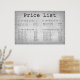 This large contemporary, typography graphic designer price list wall poster template is set up and ready for you to over type with all your own salon menu cafe business services & prices.