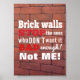 Brick walls stop the ones who don't want it bad enough! Not me! This is an adaptation of a quote by Randy Pausch in the Last Lecture. In life, we will run into obstacles (represented by brick walls) which are there to prevent people who do not desire the goals badly enough to overcome the obstacles. This design is to encourage the recipients to continue to work hard at their goals and overcome the obstacles they face.