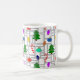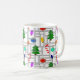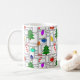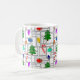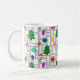 This mug has a larger geometric design of Christmas trees, candy canes, lights, and ornaments with grey rectangle outlines on top. Like the design but want a different colour? Message me.