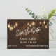 This modern, industrial reminder card features a rich brick wall background image overlaid with warm, vintage Edison lights hanging from above. I've used a modern handwritten font to render a graphic depicting the words "Save the Date". Your own text is easily added for customising this design as little or much as you wish. Use the template fields to simply enter your personal details. If you'd like additional changes, merely click to customise further and you'll be able to re-position any of the layers which were added separately and left unlocked for greatest design control. Please do not hesitate to reach out to me for special requests or for assistance with customisation.