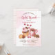 Bridal brunch chocolate coffee, biscuits, berries bridal shower invitation template, playful red and brown colours for relaxed function.