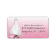Address label with bridal gown on dress form, shoes and bouquet on pink background. These labels are perfect for bridal shower invitations. Fully customisable text. Matching invitation is available.