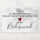 Sweet Bridal Party Proposal |Modern Wedding Party sparkling wine Label on a Soft white floral background centred with a cute red heart. Write your own cute little message or use ours. Can be customised for any wedding party role.