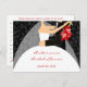 Trendy Bride to be advice cards, with a cartoon of a bride and groom on a black swirl background with red flowers. Bridal shower advice cards are a fun and personal way for guests to give their advice for happy marriage! The bride will cherish these words of wisdom for years to come!