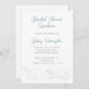 Bridal shower invitation with beach shells design. Celebrate the bride-to-be with a luncheon, tea or any type of party. The title at the top and the name of the bride is in elegant, handwritten script font. All other text is printed calligraphy in sea blue color. Customize text as needed for the RSVP and add a website to reply online. Three popular Florida seashells make a border across the bottom and include the lightning whelk, horse conch, and spotted junonia shell. Changing the size may alter this design.