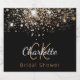 For an elegant Bridal Shower. A chic black background with faux gold glitter spots. Personalise and add a name and monogram initials. The name is written in a golden colour with a modern hand lettered style script. White and golden letters.