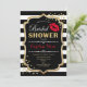 Elegant black white design with faux glitter gold. Features red lips kiss, black white stripes, confetti and script font. Perfect for a stylish shower. Message me if you need further customization.
