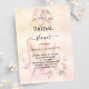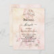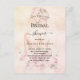 A rose gold, blush pink gradient background. A blonde bride in the background. Personalise and add a name and party details.