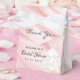 For an elegant, classic, glamourous and girly style bridal shower. A blush pink silk, satin background, and a bridal dress, gown. With the text: Bridal Shower and Thank You written with a modern hand lettered style script. Template for the bride's name and a date.