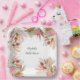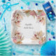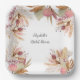 Beautiful Bridal Shower paper plates with pretty dried BOHO flowers, pompas grass, palm fronds and King Protea. Colours in shades of pink, brown rust, terracotta and grey.