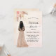 A rose gold, blush pink gradient background. A bride, pink roses, pampas grass. Personalise and add a name and party details.