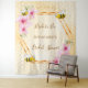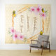 Elegant, fun, summer bridal shower tapestry. Yellow, white background with a honeycomb pattern. With a faux gold geometric frame. Decorated with pink tropical florals flowers, hibiscus and happy bumble bees. With the text: Bride to Bee and the name of the bride Template for the bride's name and a date. Can be used as wall decor for the bridal shower or as a photo backdrop.