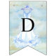 Celebrate the bride-to-be’s impending nuptials by putting up these lovely bridal shower bunting flags at her bridal shower party. The feminine flags feature an elegant wedding gown on a hanger and pastel colours of blue and lavender .