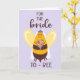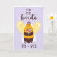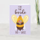 This is a funny Bridal Shower card with a bee wearing a crown with a veil carrying a bouquet of flowers with a white ribbon. The text says ‘For the Bride to bee.’