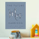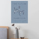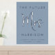Chic "The Future Mrs" dusty blue welcome poster sign for your bridal shower with real gold foil and "Mrs" written in a large elegant script. Personalise with your future married name, first name and shower date.