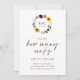 Sunflower & Roses Fall Bridal Shower Game Sign - How Many Corks (5x7): This elegant, yet rustic bridal shower game sign features a beautiful yellow sunflower and burgundy red roses watercolor wreath at the top.