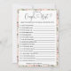 A custom game for a bridal shower, "Who Knows the Couple Best?" invites your guest to answer personal questions about the bride and groom. The guest with the most correct answers wins. This game card design coordinates with the Summer Rose Garden Bridal Shower invitation and has a border of pink and white roses and mixed flowers. The back of the card has the rose floral border along the top and bottom of the design.