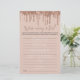 A fun party game for your Bridal Shower with this rose gold glitter drip design. Your guests will write down their favourite memory with the bride to be who will then read it out and everyone guesses whose memory it is. Your name and the date are subtely tinted in the background, overlaid with lines on which your invitees can write their anecdotes. Whose memory Is this is in a set elegant script, and the rest of the text you can easily personalise.