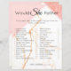 Add this fun Would she Rather Bridal Shower game. A modern marble design presents your business in an elegant fashion. The glitter details are simulated in the artwork. No actual glitter will be used in the making of this product. Coordinating backside is included. Matching items to complete your event collection are available in our Zazzle store!