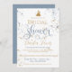 Bridal shower gold glitter_dusty blue invitation