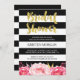 Bridal Shower Gold Glitter Pink Floral Stripes Invitation