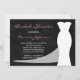 This beautiful bridal shower invitation features a white bridal gown with a semi-transparent train on a black chalkboard background. This bridal shower invitation is perfect for use with any colour scheme as you can change the pink wording to the colour of your choice by clicking on customise it and then click on the line you are interested in changing the colour of and then click colour and select your colour. A great bridal shower invitation. Copyright henishouseofpaper