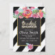 Bridal Shower Invitation, Floral Black & White Stripes