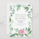 VG Invites greenery and pink floral bridal shower invite design frames your event details with lush painted watercolor greens. A matching water stained green background adorns the back of your invitation. A pretty and sophisticated choice for bridal and couples showers. Designed by Victoria. To see more visit www.zazzle.com/vginvites