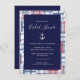 This stylish bridal shower invitation features a red, white and blue madras pattern background with a navy blue overlay. The text "Bridal Shower" is in a silver script font with a matching silver (simulated) foil style anchor. The text can be customised for your special occasion leading up to the wedding.