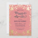 This pretty bridal shower invitation has a vintage feel and features an illustrated floral border and the words "Bridal Shower" in gold. The background is a pink (coral or salmon) colour, but can be customised to any colour you choose. The back of the invite includes a gold quatrefoil pattern with a navy blue background that can also be swapped out. The text is customisable for your special pre-wedding celebration event.