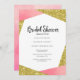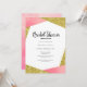 Invite your friends and family to celebrate your bridal shower with this simple yet fun pink watercolor and gold glitter invitation.