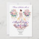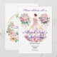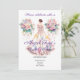 Bridal Shower invitation featuring a bride dressed in an elegant wedding dress. Pink flowers. Editable text so you can easily personalise. Invitation on front and RSVP on back.