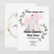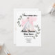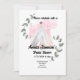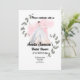Bridal Shower invitation featuring a bride dressed in an elegant wedding dress. Pink cloud and foliage surrounding the image. Editable text so you can easily personalise. Invitation on front and RSVP on back.
