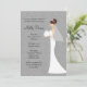 Invite the guests for a bridal shower in style with this modern and elegant Bridal Shower Invitation. Features a silhouette of a bride in a beautiful wedding dress with veil and bouquet. This black, white and silver design is an elegant way to invite guests to your shower.