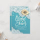 Bridal Shower invitations Template - Elegant Sunflowers, Vintage Lace Frame and Chic String Lights on Teal/ Turquoise/ Tiffany Blue Background.