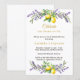 Elegant lemon and lavender Bridal Shower invitation featuring a fresh botanical design with yellow lemons and soft purple lavender. Perfect for summer, garden, or Mediterranean-inspired weddings.