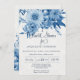 Bridal Shower Navy Blue White Chintz Damask Floral Invitation