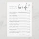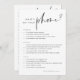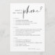 Double sided bridal shower game card features modern minimalist lettering on a white background to coordinate with any theme. Choose professional printing, or select instant download for a digital printable option! Side 1 features "What's on your phone?" with questions about things in guests' phones, with three different point values. Customise the items if desired, or use the design tool to change the colours to match your bridal shower theme. Side 2 features "how well do you know the bride?" with fun trivia questions to answer.