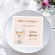 A soft blush pink background colour. Decorated with a glass of golden sparkling Prosecco and pearls. Add a name and a date.