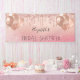 For an elegant and feminine Bridal Shower. A blush pink, rose gold gradient background. Decorated with faux glitter drips, paint dripping look, and balloons. Personalise and add the name. Perfect both as a welcome banner or as party decor.