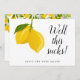 Modern script bridal shower lemons greenery change of date card can be personalised with your new plan details. The reverse has additional information for you to keep your family and friends updated. Designed by Thisisnotme©