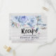 Bridal Shower Recipe Card Templates - Elegant Blue Watercolor Natural Boho Flowers and Feathers and Handwritten Script on Rustic White Wood Background.