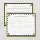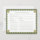 Bridal Shower Recipe Card Elegant Sunflower Green