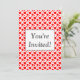 A custom bridal or baby shower invitation template with simple red polka-dots big and small on a white background. Customise it to change fonts, background colours and more, even save your design for later.