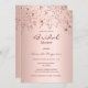 A girly and feminine Bridal Shower invitation. On front: A rose gold faux metallic looking background. Decorated with rose gold, copper dripping and shining stars. Templates for the bride's name and party details. The name and the text: Bridal are written with a hand lettered style script, black coloured letters.