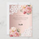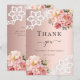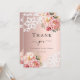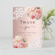 A modern and elegant bridal shower thank you card. A rose gold gradient background. Decorated with rose gold and blush pink roses, florals flowers and lace. On the front the text: Thank You.