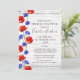 Coordinated bridal shower invitation cards are a beautiful way to celebrate the special bride-to-be! Gorgeous, vibrant red poppies and pretty blue cornflowers offer an energetic pop of colour on rustic whitewash wood background. This modern-meets-farmhouse styled design is full of wildflower charm for the romantic country wedding!