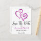 Send off the "Save The Date" announcement for a bridal shower or other special occasion featuring linked magenta heart art on both sides. Personalise the front and back text in the template fields or click customise to select a font style, size, and colour you prefer.
